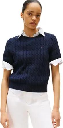 Damen Pullover Cable Kurzarm, Blau (Dark Night Navy), M