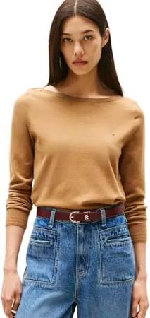 Women's CO Jersey Stitch Boat-NK Sweater WW0WW40099, Khaki, XXS, Khaki (Sandelholz), XS