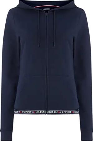 Damen Sweatshirt mit Reißverschluss Script Zip mit Kapuze, Blau (Dark Night Navy), M