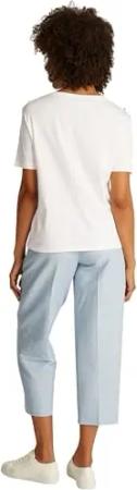 Damen T-Shirt Kurzarm Stripe Gold mit Knöpfen, Weiß (Ecru), S