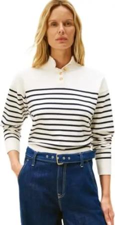 Damen Sweatshirt Gold Button Rugby Terry mit Spitzkragen, Mehrfarbig (Dark Night Navy/Ivory Silk STP), M