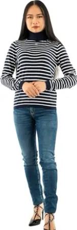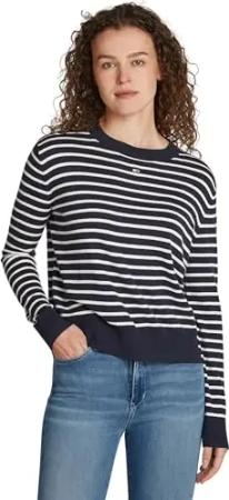 Damen Pullover Essential Crew Neck Rundhalsausschnitt, Mehrfarbig (Navy / White Stripe), XXS