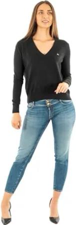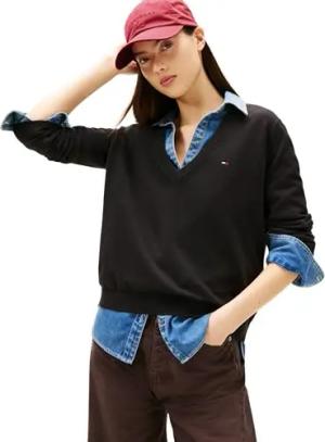 Damen Pullover Essential mit V-Ausschnitt, Schwarz (Black), S