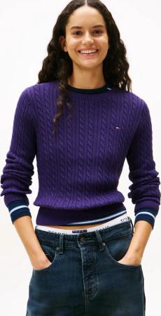 Tommy Hilfiger Pullover mit Kapuze aus Zopfstrickmuster, Chambray Blue, 42