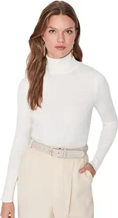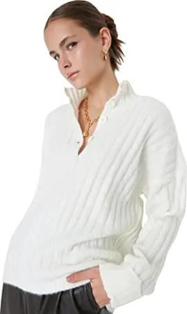 Damen Trendyol Arm Tipp Detaillierte Polokragen Strickwaren Pullover Sweater, Grün, M EU