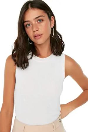 Damen Gestrickter Körper mit Dunklen Nieten T Shirt, Weiß, S EU