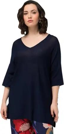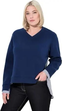 Damen große Größen Übergrößen Plus Size Sweatshirt, Bluseneinsatz, V-Ausschnitt, Langarm Marine 50+ 833479730-50+
