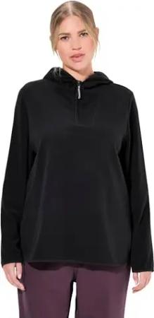 Damen große Größen Übergrößen Plus Size Fleece-Troyer, kurz, Oversized, Kapuze, Langarm, recycelt schwarz 46+ 834626100-46+