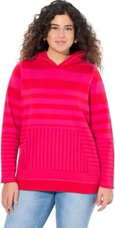 Damen große Größen Übergrößen Plus Size Hoodie, Streifen, Kapuze, Kängurutasche, Langarm Lychee 42+ 839579530-42+