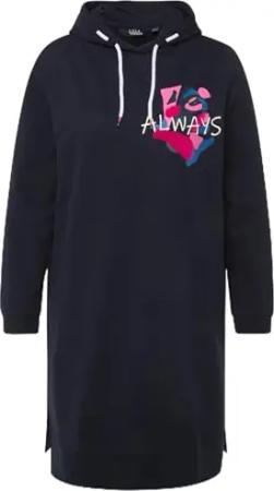 Damen große Größen Übergrößen Plus Size Long-Hoodie, Schriftmotiv, Seitenschlitze, Langarm Marine 46+ 815509130-46+