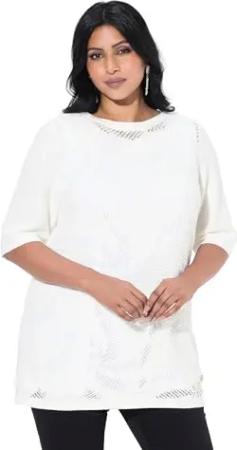 Damen große Größen Übergrößen Plus Size Pullover, Blüten, U-Boot-Ausschnitt, Halbarm schneeweiß 46+ 835315200-46+
