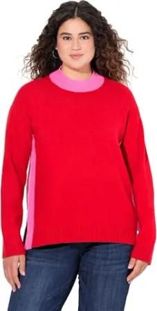 Damen große Größen Übergrößen Plus Size Pullover, Farbkontrast, Stehkragen, Langarm Lychee 46+ 834423530-46+