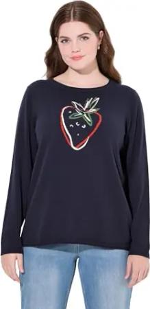 Damen große Größen Übergrößen Plus Size Pullover, Fruchtmotiv, Rundhals, Langarm, Biobaumwolle Marine 42+ 834907130-42+