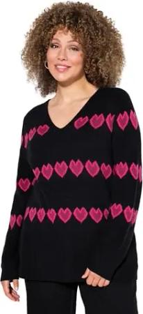 Damen große Größen Übergrößen Plus Size Pullover, Herzen, V-Ausschnitt, Langarm schwarz 58+ 835017100-58+