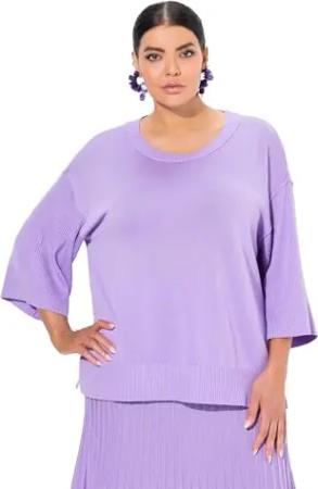 Damen große Größen Übergrößen Plus Size Pullover, Oversized, Rundhals, 3/4-Rippstrickärmel, Wollanteil Lavendel 46+ 835217814-46+