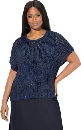 Damen große Größen Übergrößen Plus Size Pullover, Pailletten, Rundhals, ärmellos Dunkles Marine 50+ 838148120-50+