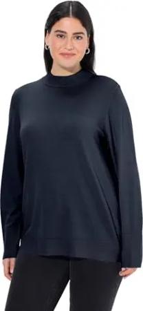Damen große Größen Übergrößen Plus Size Pullover, Stehkragen, Langarm, Rippbündchen Marine 42+ 822010130-42+
