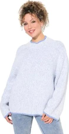 Damen große Größen Übergrößen Plus Size Pullover, Streifen, Stehkragen, Langarm himmelblau 50+ 837205719-50+