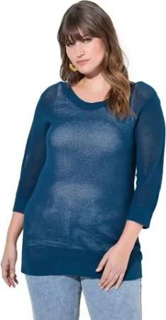 Damen große Größen Übergrößen Plus Size Pullover, U-Boot-Ausschnitt, 3/4-Arm, Biobaumwolle Petrol 58+ 836967744-58+