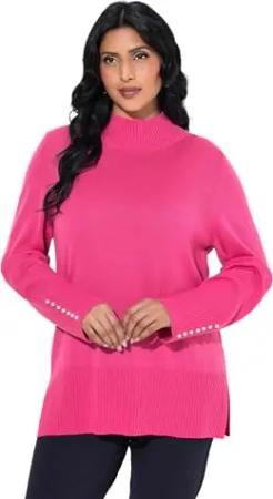 Damen große Größen Übergrößen Plus Size Pullover, Woll-Seidenmischung, Stehkragen, Zierperlen Fuchsia pink 42+ 835726810-42+