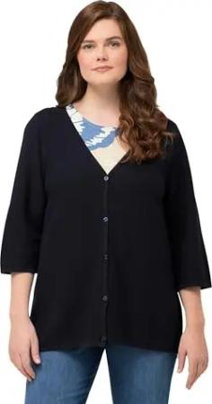 Damen große Größen Übergrößen Plus Size Strickjacke, V-Ausschnitt, 3/4-Arm, Biobaumwolle