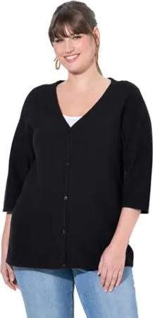 Damen große Größen Übergrößen Plus Size Strickjacke, V-Ausschnitt, 3/4-Arm, Biobaumwolle schwarz 42+ 826647100-42+
