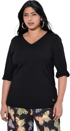 Damen große Größen Übergrößen Plus Size Strickshirt, 3D-Design, Oversized, V-Ausschnitt, Halbarm schwarz 42+ 839293100-42+