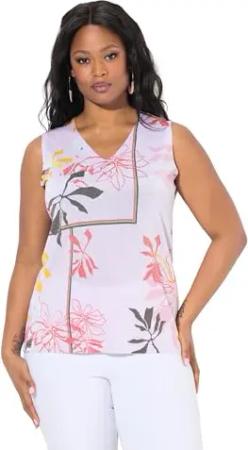 Damen große Größen Übergrößen Plus Size Stricktop, florales Muster, V-Ausschnitt, ärmellos erbse 42+ 837782420-42+