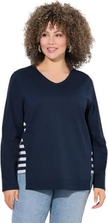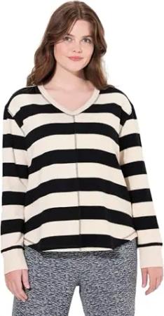 Damen große Größen Übergrößen Plus Size Sweater, Ringel, V-Ausschnitt, Langarm, Biobaumwolle