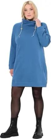 Damen große Größen Übergrößen Plus Size Sweatkleid, Stehkragen, Langarm, Taschen denimblau 42+ 825247721-42+