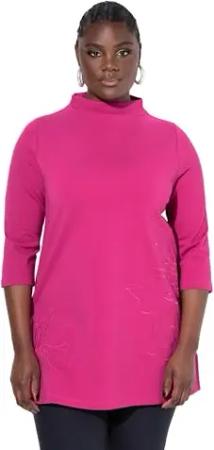 Damen große Größen Übergrößen Plus Size Sweatshirt, Stickerei, A-Linie, Stehkragen, 3/4-Arm Magenta 54+ 825086810-54+