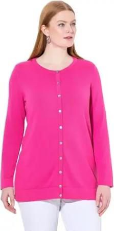 Damen große Größen Übergrößen Plus Size Twinset-Strickjacke, Rundhals, Langarm, Pima Cotton Magenta 54+ 841465810-54+