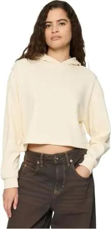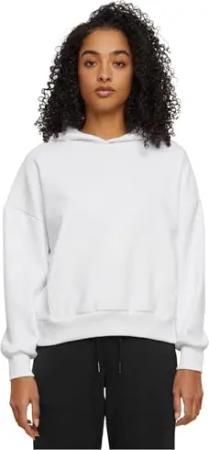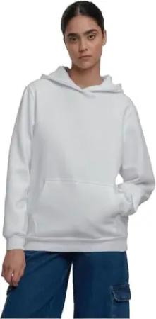 Ladies Loose Brushed Fleece Hoody White, XS