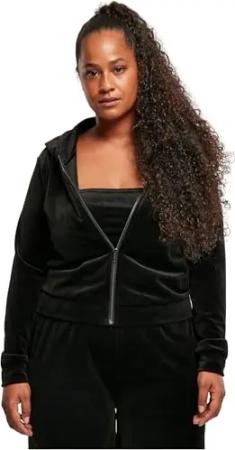 Damen Kapuzenpullover Ladies Short Velvet Zip Hoody Black XL