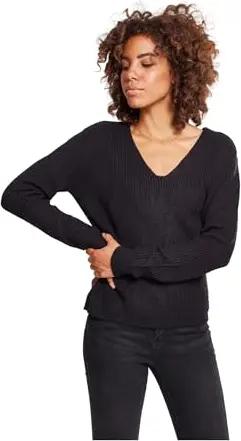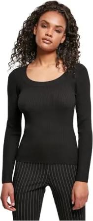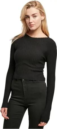 Damen Sweatshirt Ladies Short Rib Knit Twisted Back Sweater Black XS