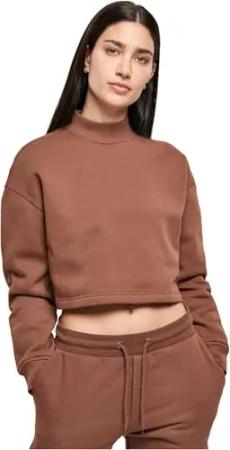 Damen Ladies Cropped Oversized Sweat High Neck Crew Sweatshirt, bark, 5XL