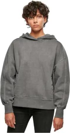 Damen Ladies Oversized Terry Hoody Kapuzenpullover, Schwarz (Black 7), S EU
