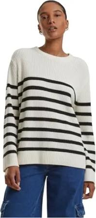 Damen Ladies Rib Striped Sweater Navy/White, 3XL