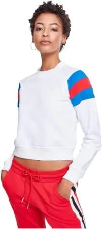 Damen Ladies Sleeve Stripe Crew Sweatshirt, per Pack Mehrfarbig (White/brightblue/firered 01557), XXXX-Large (Herstellergröße: 4XL)