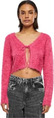 Damen Strickjacke Ladies Tied Cropped Feather Cardigan hibiskuspink XXL
