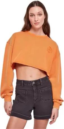 Damen Sweatshirt Ladies Cropped Flower Embroidery Terry Crewneck vintageorange 4XL