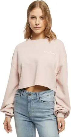 Damen Sweatshirt Ladies Cropped Small Embroidery Terry Crewneck pink XL