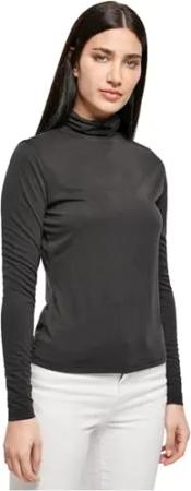 Damen T-Shirt Ladies Modal Turtleneck Longsleeve Black L
