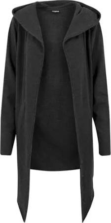 Herren Long Hooded Open Edge Cardigan – Langer Kapuzen Cardigan aus Baumwolle im Loose Fit, offener Schnitt mit offenen Kanten für Streetwear & Freizeit,Charcoal,XXL