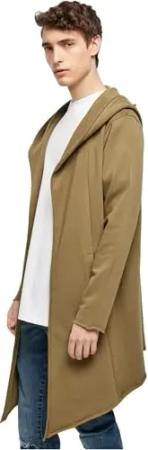 Herren Long Hooded Open Edge Cardigan – Langer Kapuzen Cardigan aus Baumwolle im Loose Fit, offener Schnitt mit offenen Kanten für Streetwear & Freizeit,Tiniolive,XL