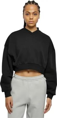 Damen Sweatshirt Ladies Cropped V-Neck Black 5XL