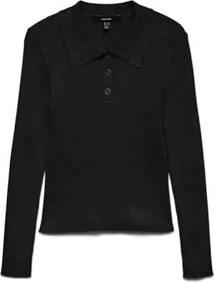 Eleganter Feinstrick Pullover Strukturmuster Rundhals Longsleeve VMCARE Sweater, Farben:Schwarz, Größe:XS