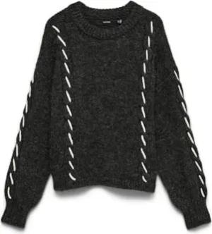 Damen Vmcharmaine Ls O-Neck Pullover Ga Boo Strickpullover, Obsidian/Detail:W. Birch, M