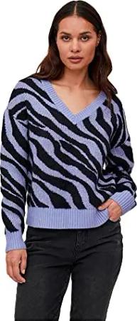 Damen Viril Feami Mix V-neck L/S Knit Top Noos Pullover, Pale Iris/Pattern:with Black,M