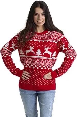 Weihnachtspullover Rentiere, Ugly Sweater für Damen, Rentierdesign in Rot und Weiß, Sweatshirt in 3XL, 100% Polyacryl